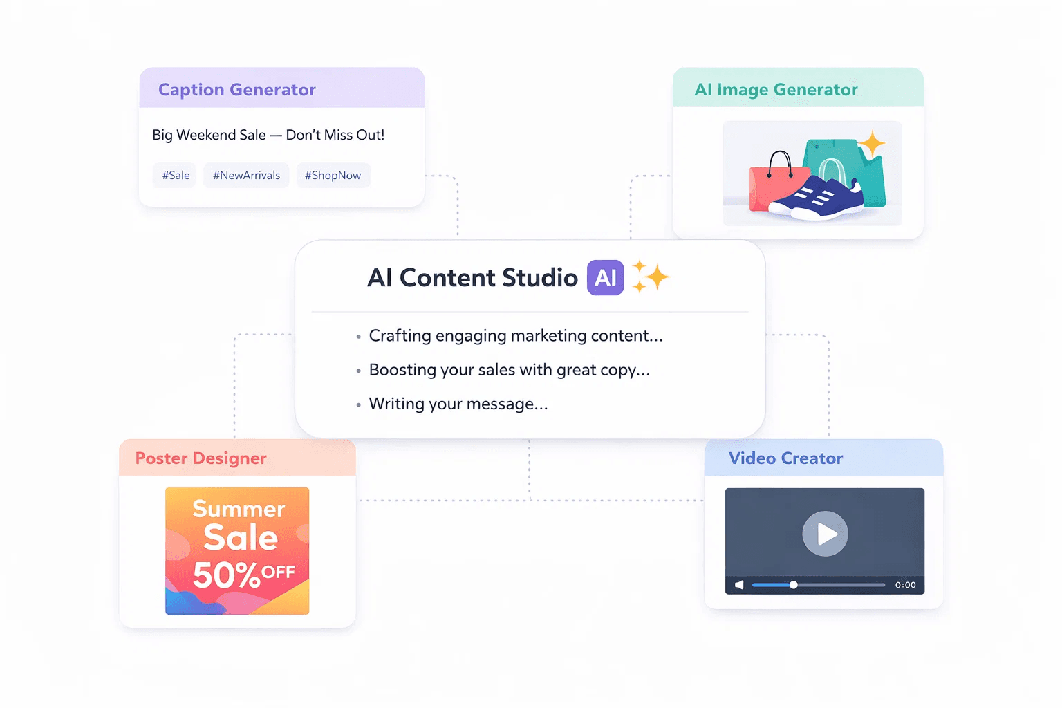 Stuck on what to post? Ask Zoe. She generates a full week of content ideas tailored to your business category and audience.
