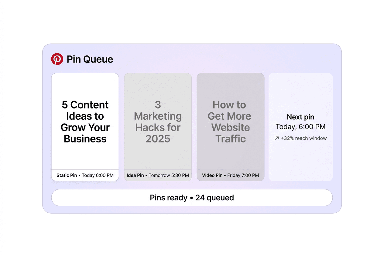 Pinterest audiences are most active at specific windows throughout the week. ZocialOne identifies the optimal posting slots based on your audience's behavior — not guesswork.