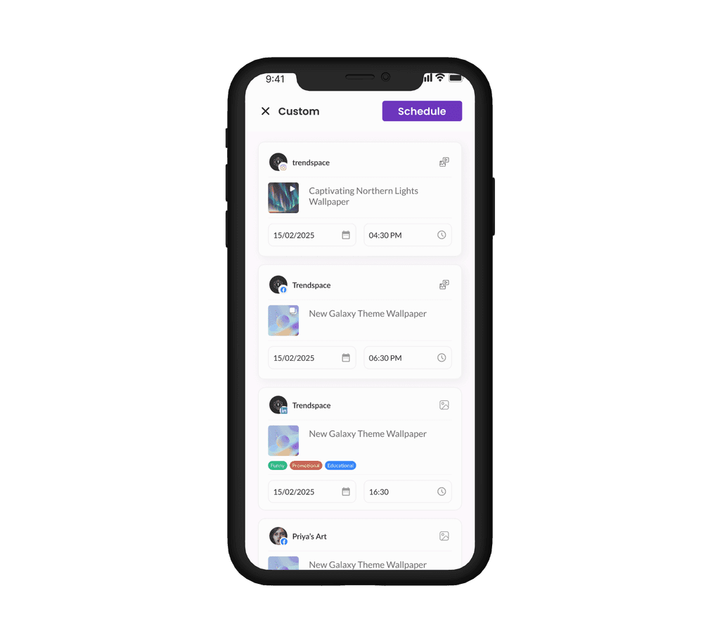 Tired of posting manually on every platform? Schedule, customize, and manage all your posts in one place—so you can focus on growing your business.
